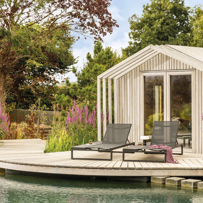 The lounger complements the rest of the Eos collection, featuring a lightweight design with clean lines and smart proportions. Its frame is made from powder-coated aluminium – a premium material that resists weathering and rusting over time – while the seat comprises UV-resistant Textilene fabric that’s finished with discreet wheels and floor glides.
