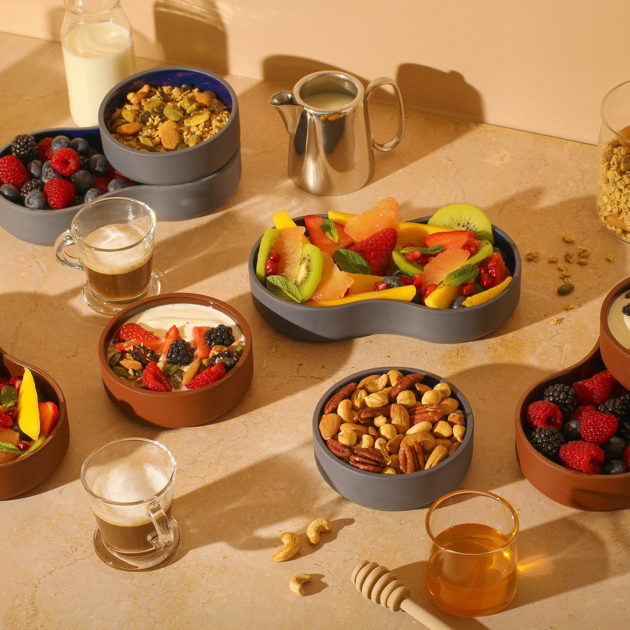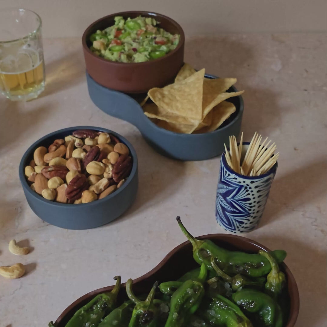 Perfect for serving dips and nibbles, there are two bowls included in the set: one peanut-shaped and one circular, which can either be stacked or nestled together in different formations. Beautifully handcrafted from solid coloured porcelain – a superior robust and hardwearing ceramic that should last a lifetime if cared for.