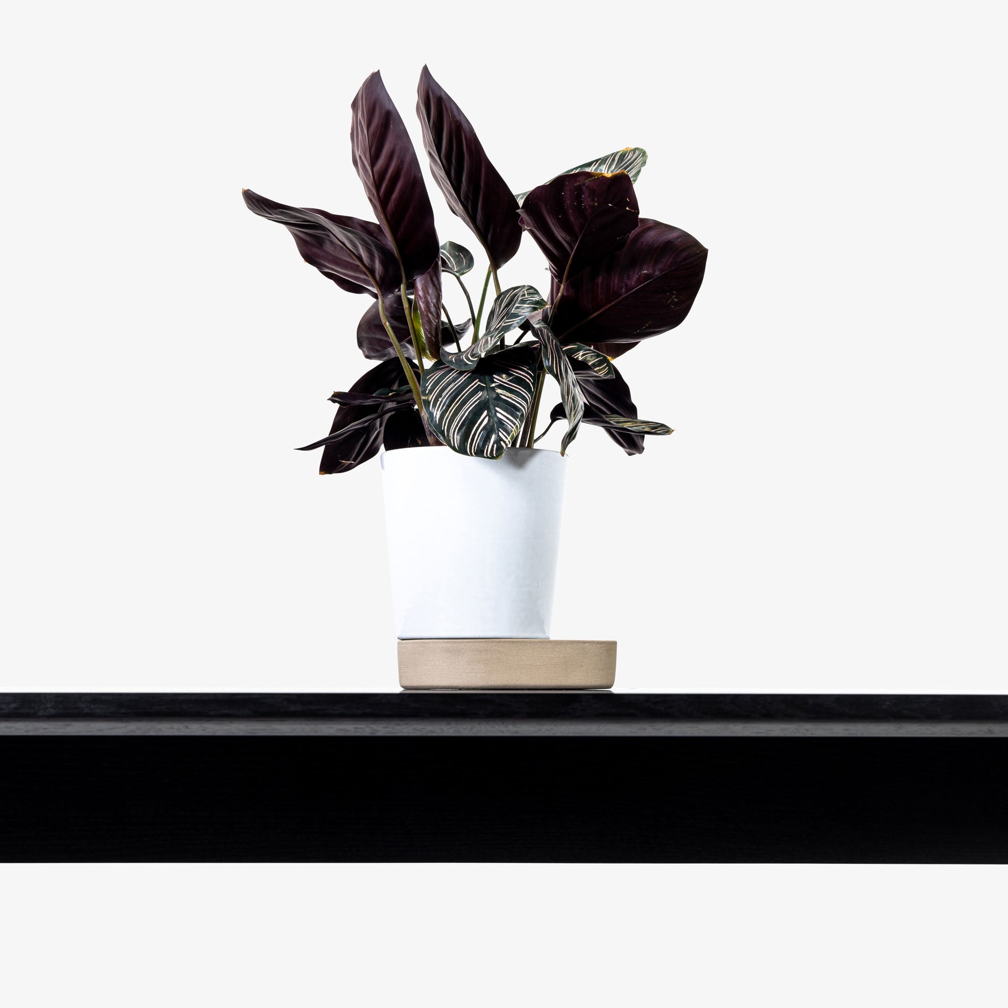 The Sip Plant Pot is a two-part self-watering planter designed by Ann Kristin Einarsen which plays with the shape of the classic terracotta form. Minimally constructed and smartly designed, a nylon wick works as an extension of the plant roots and draws water from the reservoir, enabling the plant to draw up just the water it needs. A cleverly shaped glazed tray holds water and allows for easy watering.