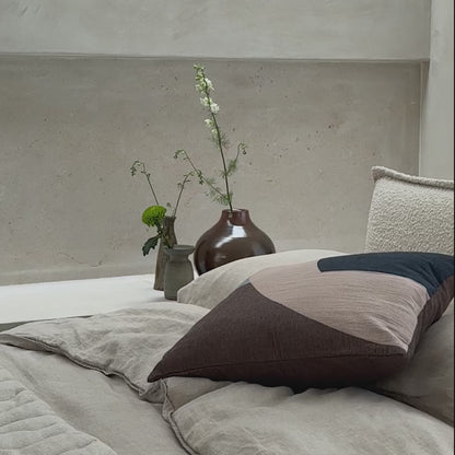 Its headboard is inspired by the form of a pillow and is luxuriously upholstered in tactile bouclé fabric with delicate, French seam detailing around the edge.