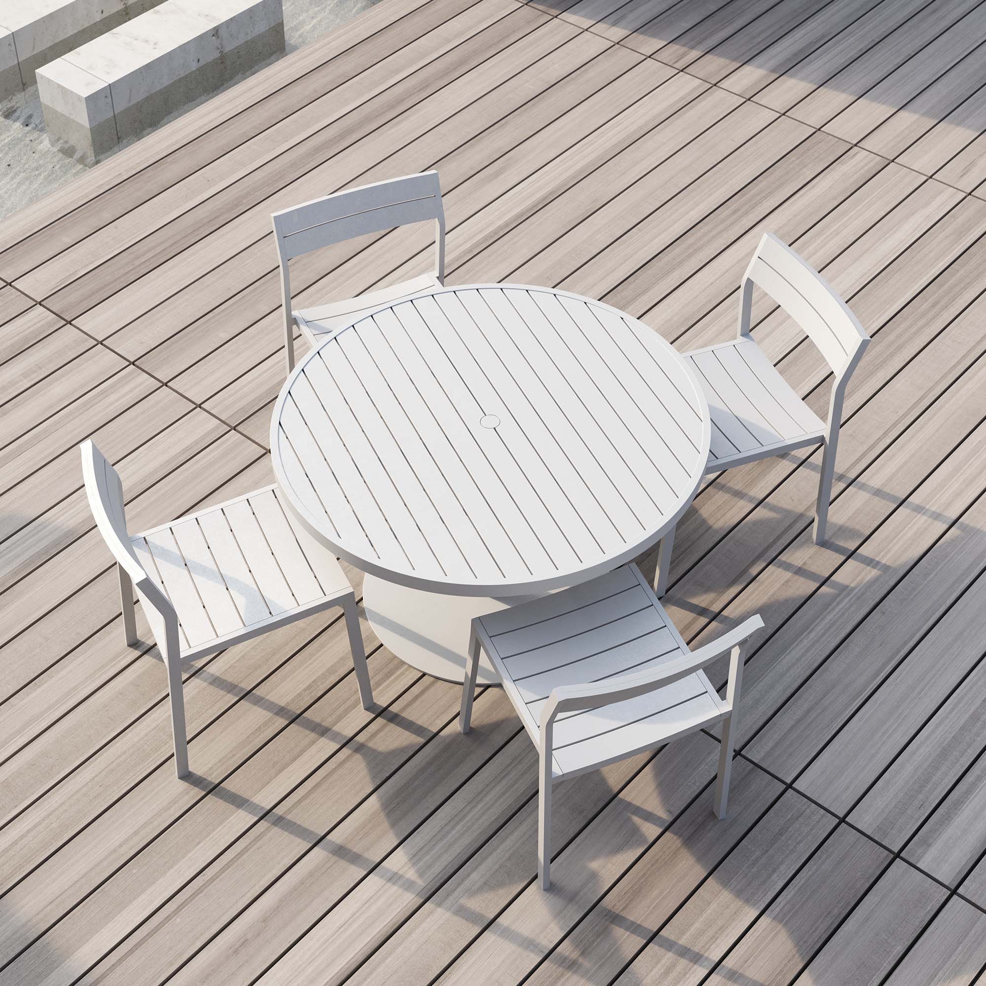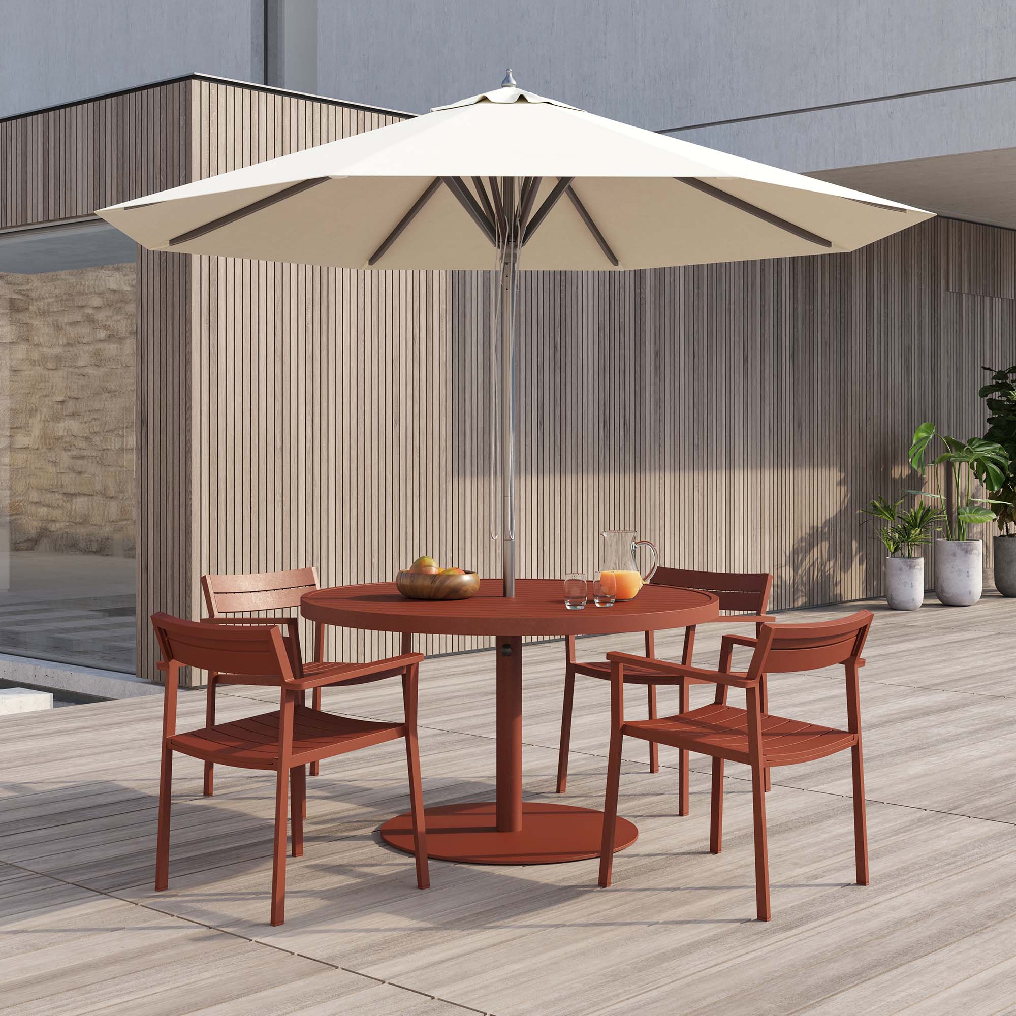 Withstanding all weather conditions, it’s crafted from robust powder-coated aluminium in a selection of Black, Rust, Bottle Green, Pebble Grey or White finishes, meaning you can tailor your table to suit your taste or space.