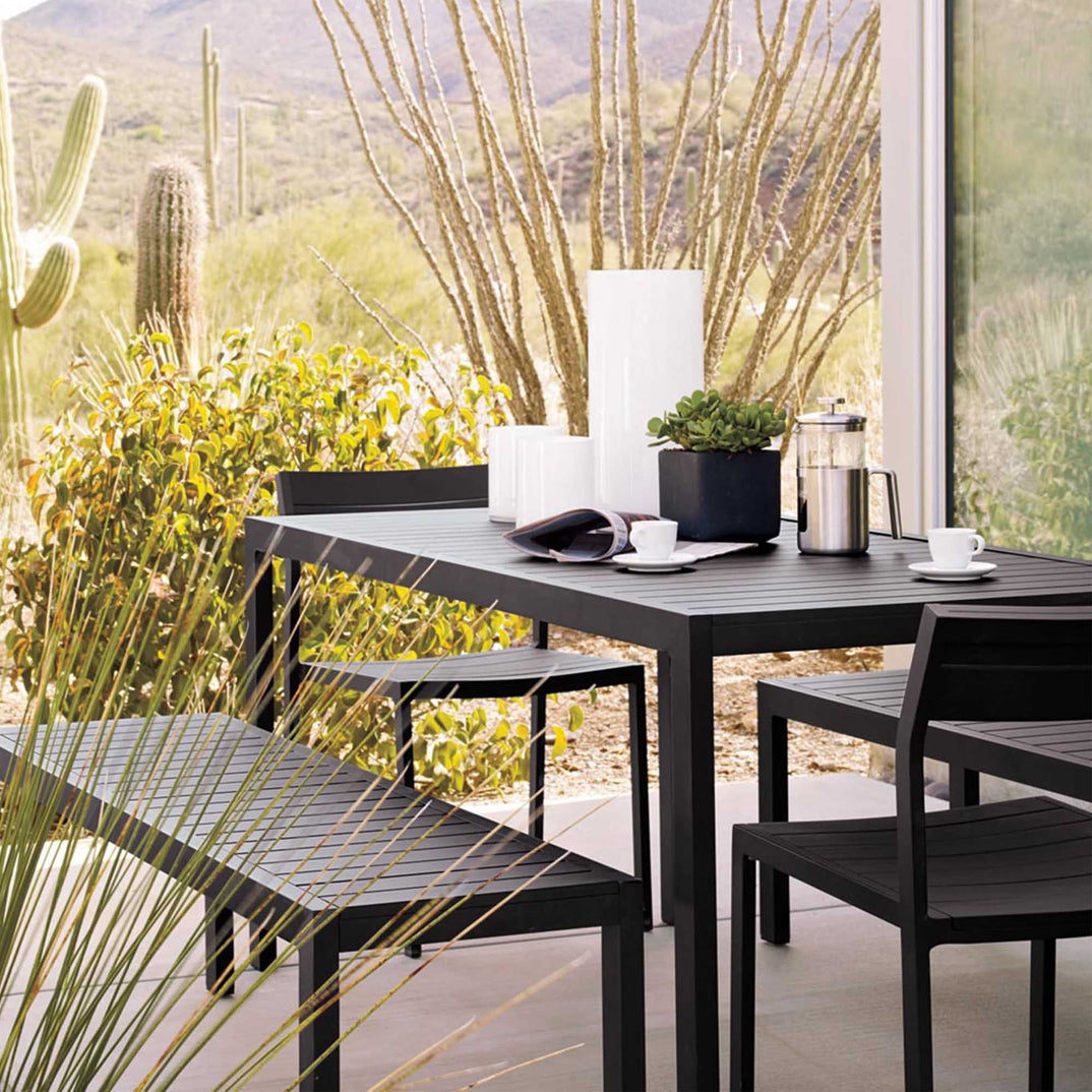 The Eos Bench adds a distinctly contemporary edge to any outdoor space.