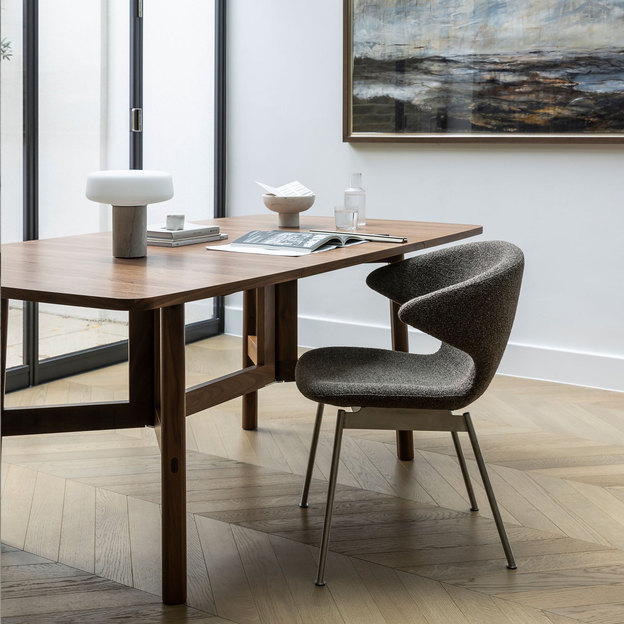 With clean lines and excellent craftmanship, the Marlow Table by award-winning designer Matthew Hilton is an elegant extendable dining table. Compromising on neither style nor function, the drop leaf top easily folds down on both sides. The legs slide in and lock in place when the leaves are down, freeing up space while still functioning as a smaller dining table. When fully extended, the Marlow Table can accommodate up to 8 people.