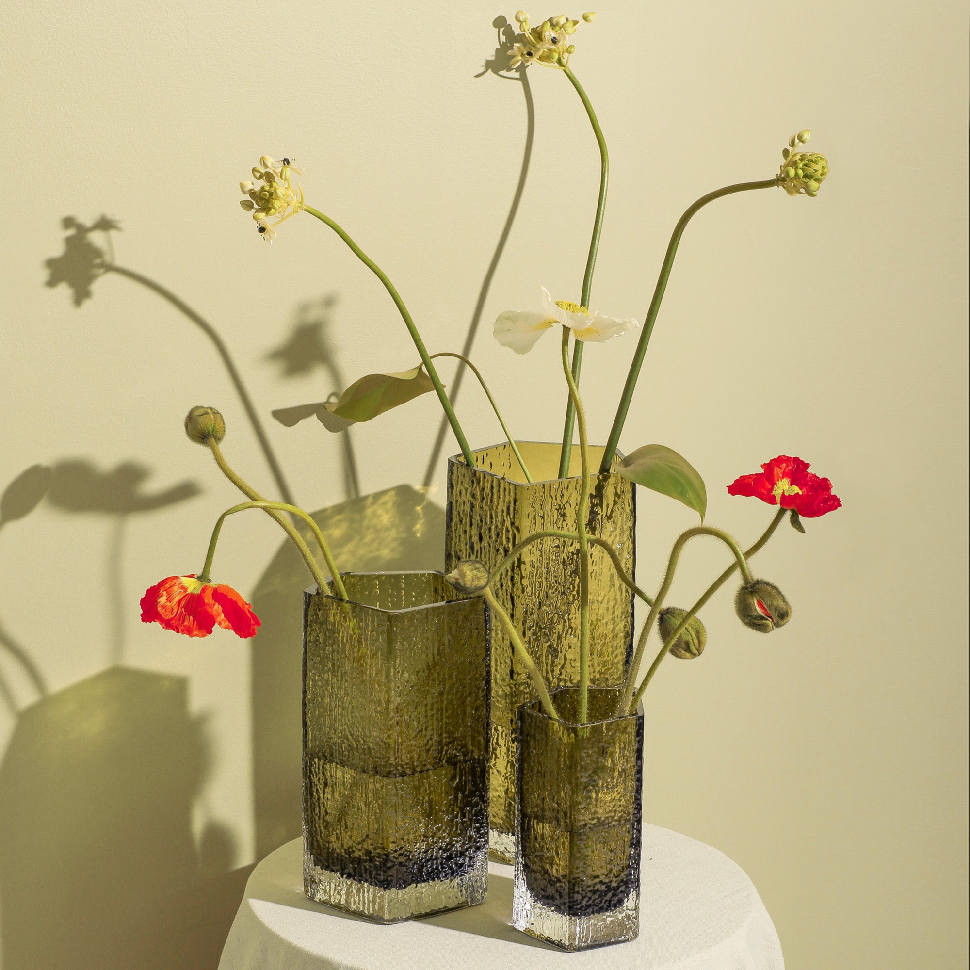 Available in three heights, the vase makes a stylish standalone piece or can be grouped together to create a striking arrangement.