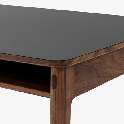 A compact workspace with a handy storage shelf - a perfect addition to any home office. The desk features access ports that provide a neat way to keep charging cables hidden. See Details