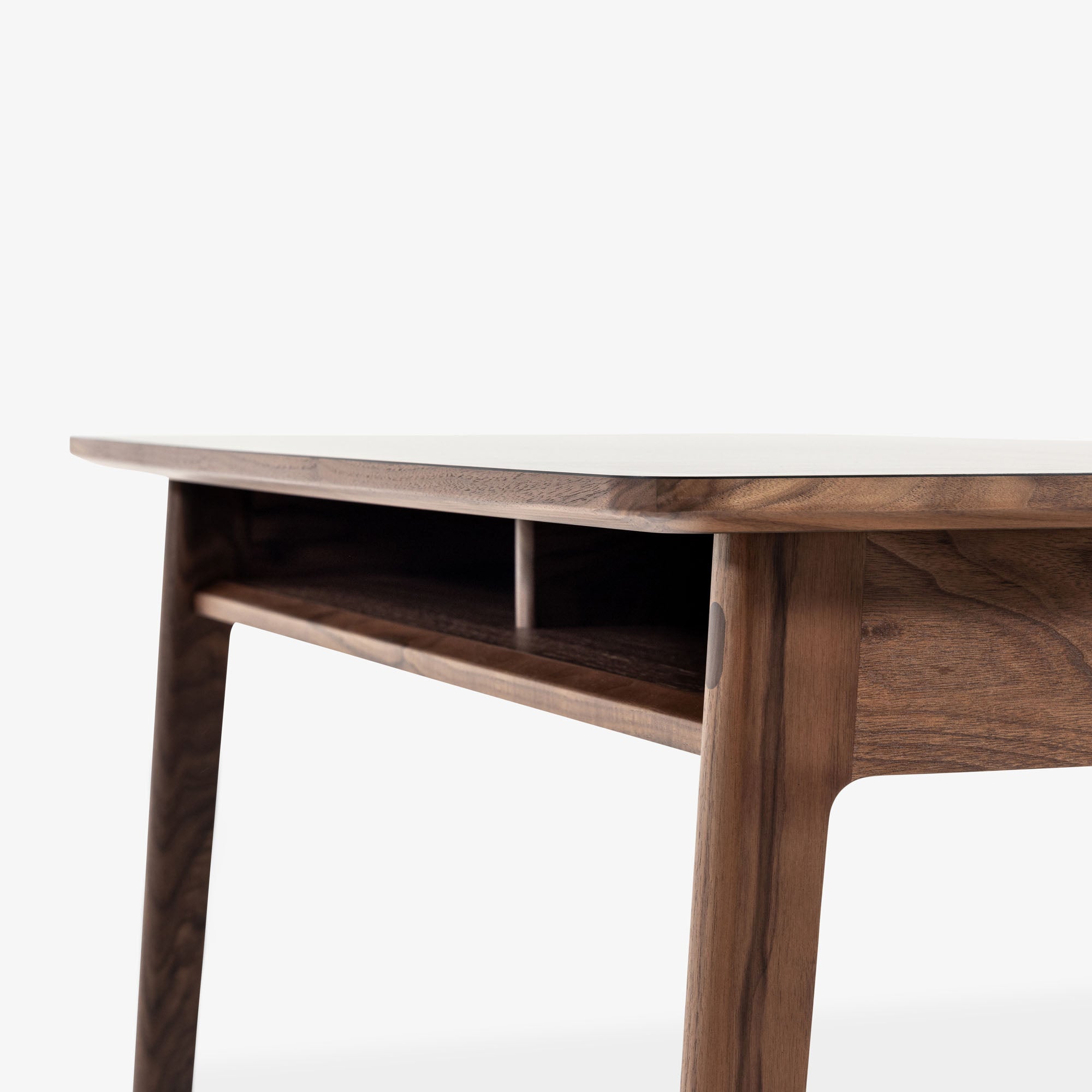 Designed by Mathew Hilton, the Dulwich Desk is a compact workspace with a handy storage shelf — a perfect addition to any home office. The desk features access ports that provide a neat way to keep charging cables hidden and easily accessible from the rear.